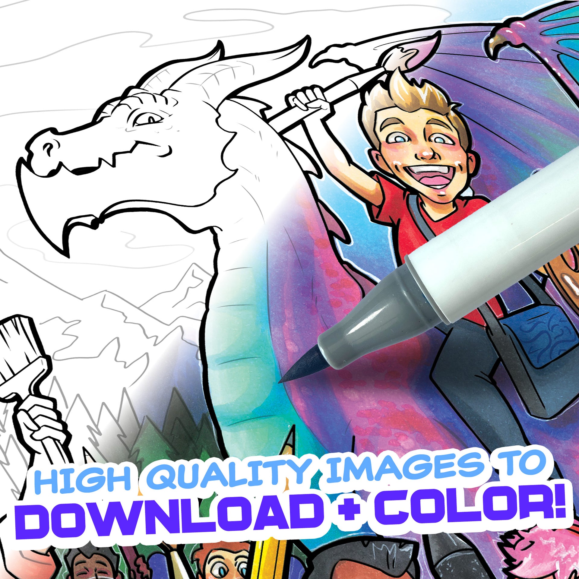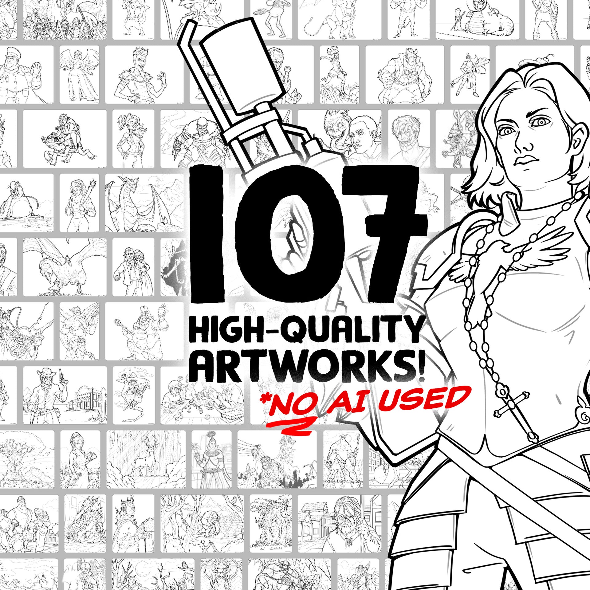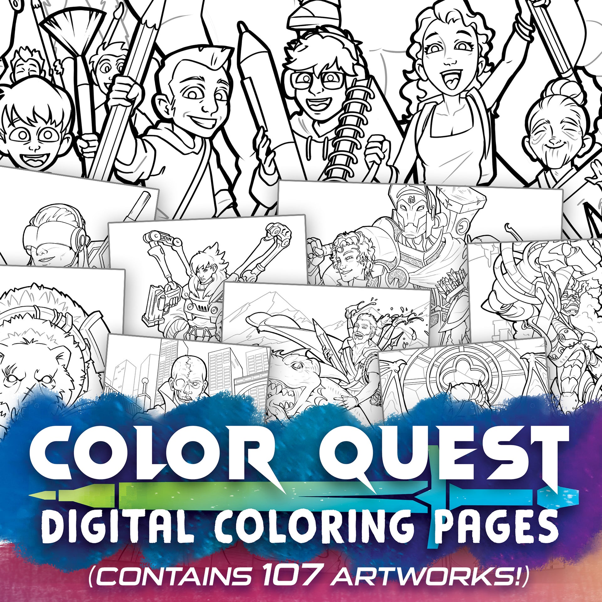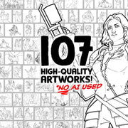 This carefully crafted coloring pack features 107 digitally hand-drawn high-resolution illustrations for you to get creative with! Every image is themed around adventure - so if you're into sci-fi, fantasy, and everything in-between, you're going to love this digital coloring pack!