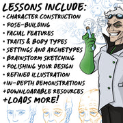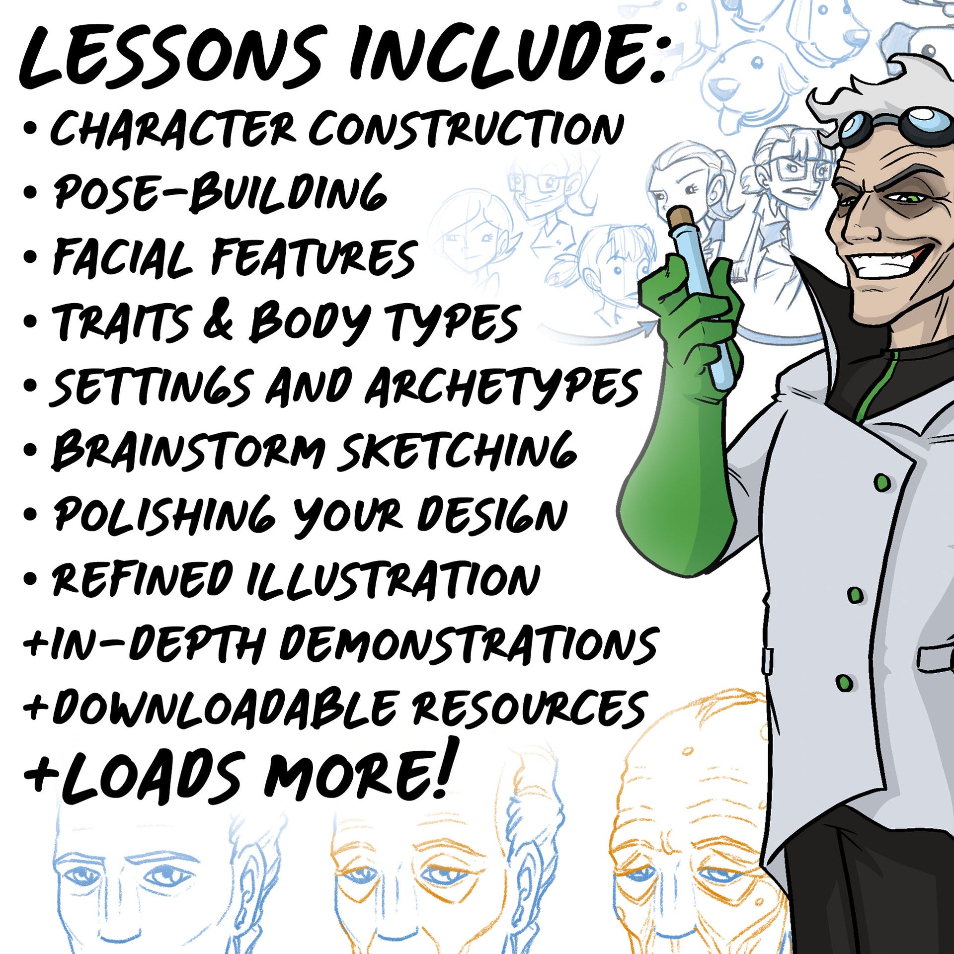 Each of the above modules contains many videos taking you through the character design process in a way that is memorable, entertaining, clear, and inspiring!